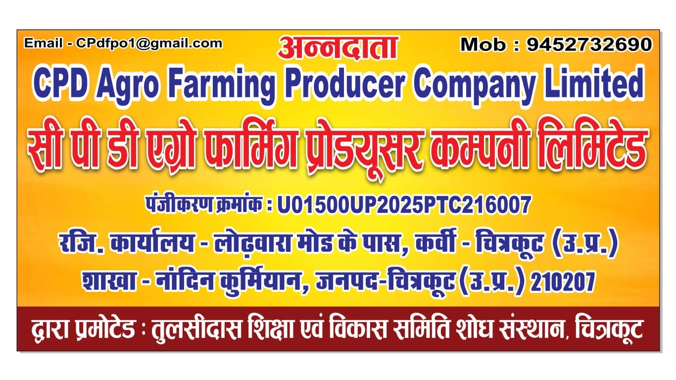 चित्रकूट, उत्तर प्रदेश। — CPD Agro Farming Producer Company Limited (FPO) ने किसानों की स्थिति में सुधार और आत्मनिर्भरता के लिए एक महत्वपूर्ण पहल शुरू की है। यह एफपीओ तुलसीदास